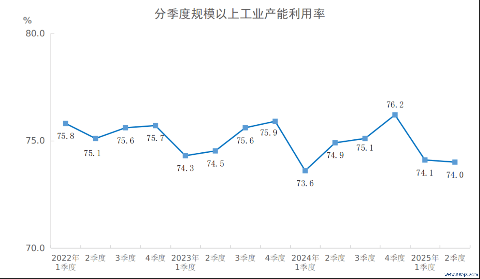【大河财立方讯息】7月15日,据国度统计局,2025年二季度,宇宙限度以上工业产能诈欺率为74.0%,比上季度下落0.1个百分点,比上年同时下落0.9个百分点。