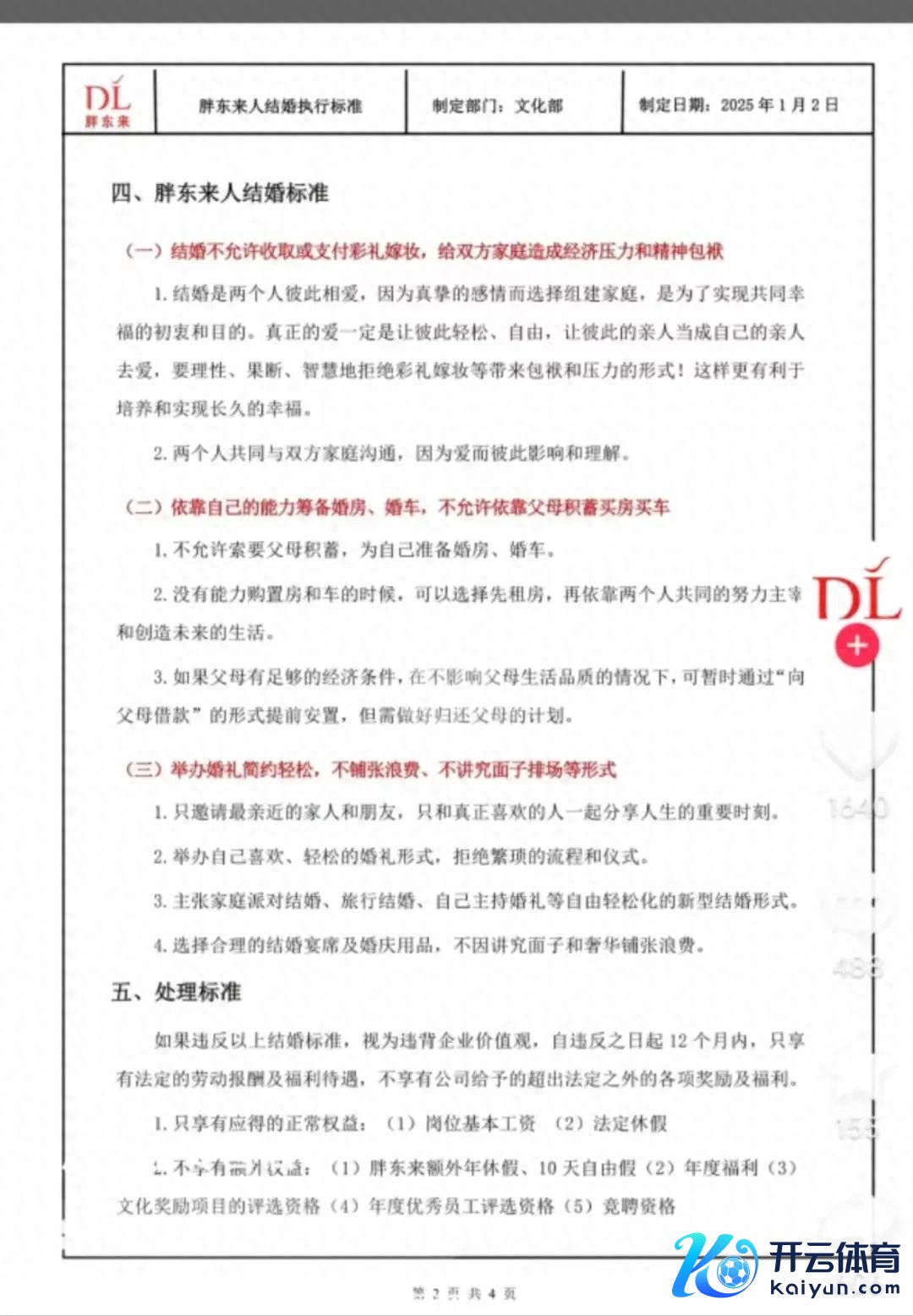 2025年着手Ninegame九游体育,胖东来突发“仙葩”规矩:遏止职工成亲收彩礼。 1月3日,胖东来在官方账号发布了企业职工手册中对于“胖东来东说念主成亲履行圭臬”,主要不休有三条: 其一,成亲不允许收取或支付彩礼,给两边家庭形成经济压力和精神背负; 其二,依靠我方的智商筹商婚房、婚车,不允许依靠父母积聚买房买车; 其三,举办婚典检朴叮嘱,不铺排张扬、不谨慎颜面排场等样式。 除此除外,胖东来还规矩有关职工一朝违犯以上成亲圭臬,视为贫乏企业价值不雅,将受到相对应的处罚。 早在昨年11月,胖东来