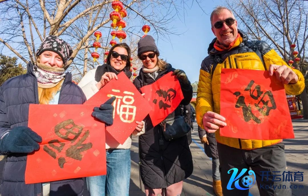 1月29日,北京天坛公园,异邦搭客手拿“福”字合影眷恋。本日,天坛春节游园会开幕,搭客一站式体验诸多非遗花样,感受浓浓的年味。孙立君摄(中经视觉)