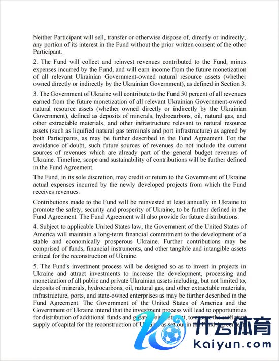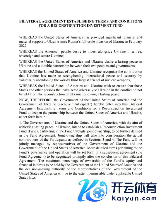 协议诡计建立一个“乌克兰重建投资基金”,乌克兰以改日石油、自然气等资源迷惑收益的50%注资,好意思国则以其他款式注资,基金由两国共同贬责。
