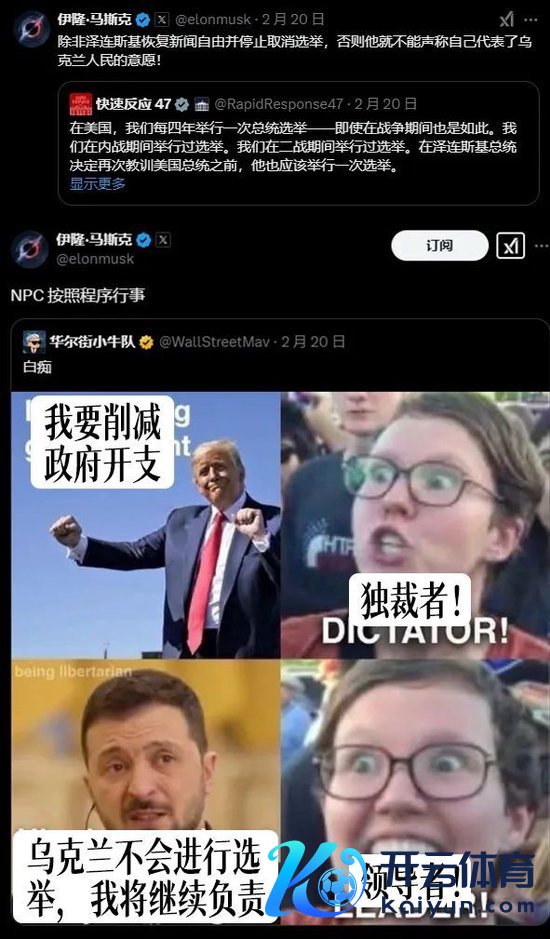 马斯克也参与其中,他在泽连斯基对于“乌克兰东谈主民对举行总统选举不感风趣风趣”的言论底下跟帖嘲讽:“啊对对对对”。