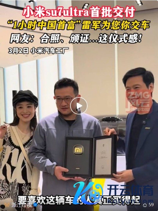 据小米汽车公众号3月2日讯息,小米SU7 Ultra锁单量已冲突10000台,提前完周密年任务。值得清雅的是,小米SU7 Ultra发布仅三天。 另外,雷军在发文称:刚知谈寰宇围棋冠军柯洁定了一辆SU7 Ultra,感谢支撑! 3月2日,小米创办东谈主、董事长兼CEO雷军微博发文称,早上10点举行小米SU7 Ultra首车委用典礼。 图片开首:视频截图 与此同期,雷军还披露小米SU7 Ultra的订单远超预期,今六合午将延续征询提产问题。 在小米SU7 Ultra委用现场,雷军理睬首批车主,与