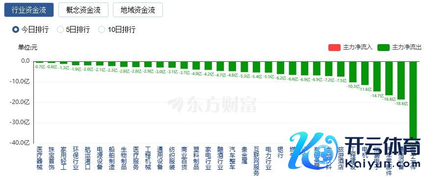 净流出方面,电子元件、通讯开导、汽车零部件等净流出排行靠前,其中电子元件净流出38.39亿元。