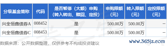 本站音信,6月23日兴证众人基金管束有限公司发布《兴全恒鑫债券型证券投资基金暂停接管大额申购(含定投)、缓助转入请求的公告》。公告中教导,为了保证基金的平定运作现金九游体育app平台,保护基金抓有东谈主利益,自2025年6月23日起兴全恒鑫债券型证券投资基金暂停接管大额申购(含定投)、缓助转入请求,申购、缓助转入上限金额为500.0万元,下属分级基金缓助明细如下: