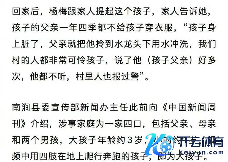 南涧县委宣传部新闻办主任自大,这个野东谈主小孩其实是一双昆仲中的哥哥,他还有个一岁的弟弟。视频上展示的完满是哥哥的样式。村里东谈主屡次看到野东谈主小孩被他爸爸在大冬天拉到水龙头下面冲洗肉体,好多东谈主看不下去齐念念劝劝他,可齐劝不动,报警也没什么用。孩子的姆妈也不可爱别东谈主说她,老是一说就用眼睛瞪东谈主,后果不少东谈主也不太敢去劝。