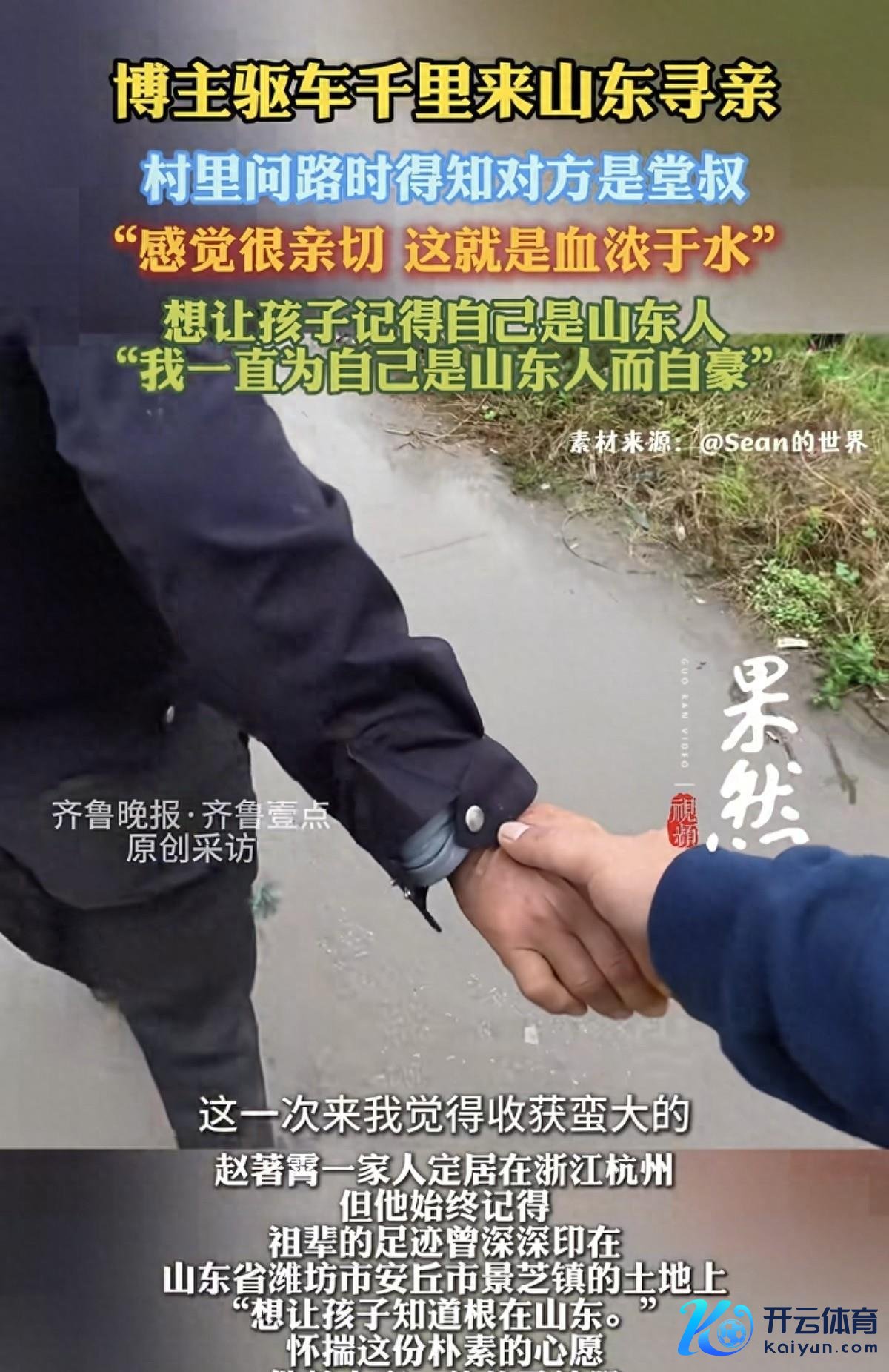 蓝本此次寻亲的履历,应该算是充满正能量的一次旅程,眩惑了上百万的柔软,以致一些官方媒体都 reportage了现金九游体育app平台,但没猜想声誉却倏得变差了。这对萧山的配偶,被品评礼节不周,为了博取柔软,言辞变得毫无挂牵。 一双领有百万粉丝的网红配偶,想着维护“寻亲”这事儿,从浙江萧山驾车赶到山东潍坊,便是为了找到家东说念主。 据博主说,他一直以我方是山东东说念主为荣,也想让孩子记取我方是山东东说念主,于是趁着上高中的孩子休假,有意来山东“寻根”。 这位博主的爷爷早年因为战役之类的原因,从山
